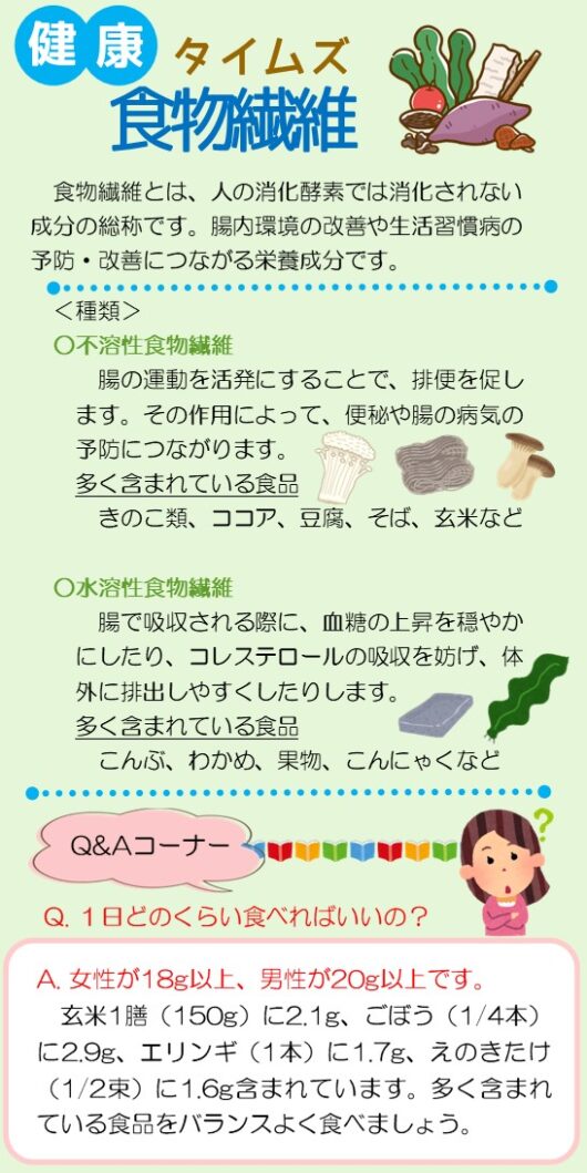 食物繊維とは、人の消化酵素では消化されない成分の総称です。 腸内環境の改善や生活習慣病の予防・改善につながる栄養成分です。