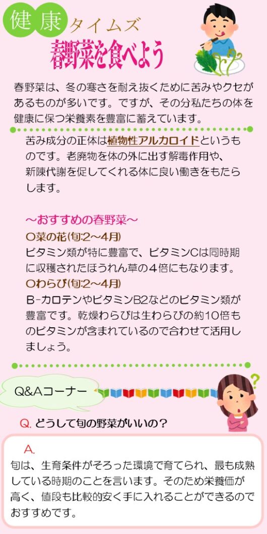 春野菜は、冬の寒さを耐え抜くために苦みやクセがあるものが多いです。 ですが、その分私たちの体を健康に保つ栄養素を豊富に蓄えています。